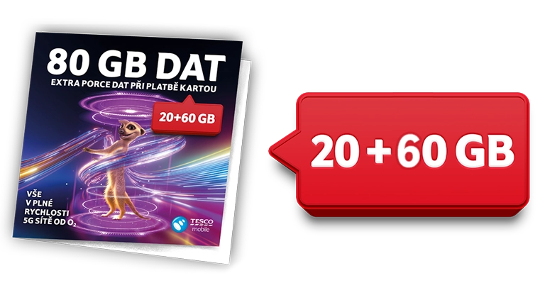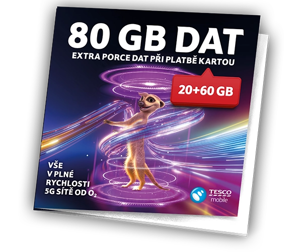Získejte 20 + 60 GB dat navíc k tarifu EXTRA. Stačí tarif platit kartou v aplikaci Tesco Mobile a odměna je vaše.