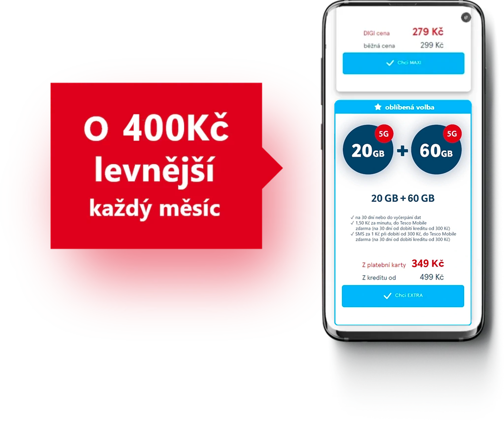 Stačí platit kartou a automaticky získáváte: Lepší ceny: tarify placené kartou jsou cenově výhodnější. Odměny navíc: za každou platbu do 299 Kč získáváte 50 Kč poukázky na nákupy v Tesco. Automatická obnova: tarif se obnoví sám, vy se o nic nestaráte.